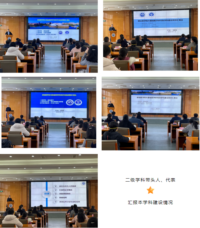 会上,生殖与健康学方向、生理学方向、微生物感染与肿瘤学方向、神经生物学方向、病理与精准医学方向的二级学科带头人、代表汇报了2020-2022年工作情况及未来五年计划与目标任务,主要从人员构成与研究方向、近三年发表的学术论文、主持的科研项目及其他成果等方面详细分析了自身的优势、劣势、竞争力,并提出了未来五年的发展计划与目标任务。