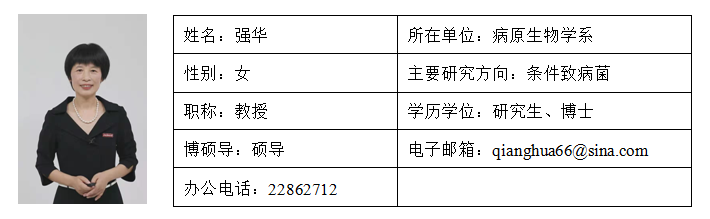 强华,女,1966年出生,汉族,医学博士,病原生物学系教授,硕士生导师,1988年毕业于福建医学院临床医学系获学士学位,1998年于快猫视频 获微生物学专业硕士学位,2007年于武汉大学获病原生物学博士学位。现任病原生物学系主任,基础医学专业负责人,福建省医学会微生物学与免疫学分会委员。研究方向:医院感染条件致病菌。近年主持福建省自然基金2项、福建省教育厅课题2项、福建省科技计划项目1项、福州市科技项目1项、快猫视频 科研课题2项。发表论文20篇,其中第一作者SCI、国家及学报级论文12篇。获省科技进步三等奖(第5作者)一项。承担《医学微生物学》、《病原生物学》、《分子病毒学》硕士生及本、专科学生的教学任务。积极参加教学改革,主持福建省教改课题2项,快猫视频 教改课题2项,参与快猫视频 教改课题2项。主编、副主编教材6部,曾获快猫视频 教学教课比赛一等奖、校教学成果一等奖一项、二等奖两项、优秀党员、快猫视频 第四批骨干教师、快猫视频 首届学生心目中好老师、快猫视频 优秀教师等荣誉。2014年11月被福建省教育研究中心聘为“福建省教育评估专家”。