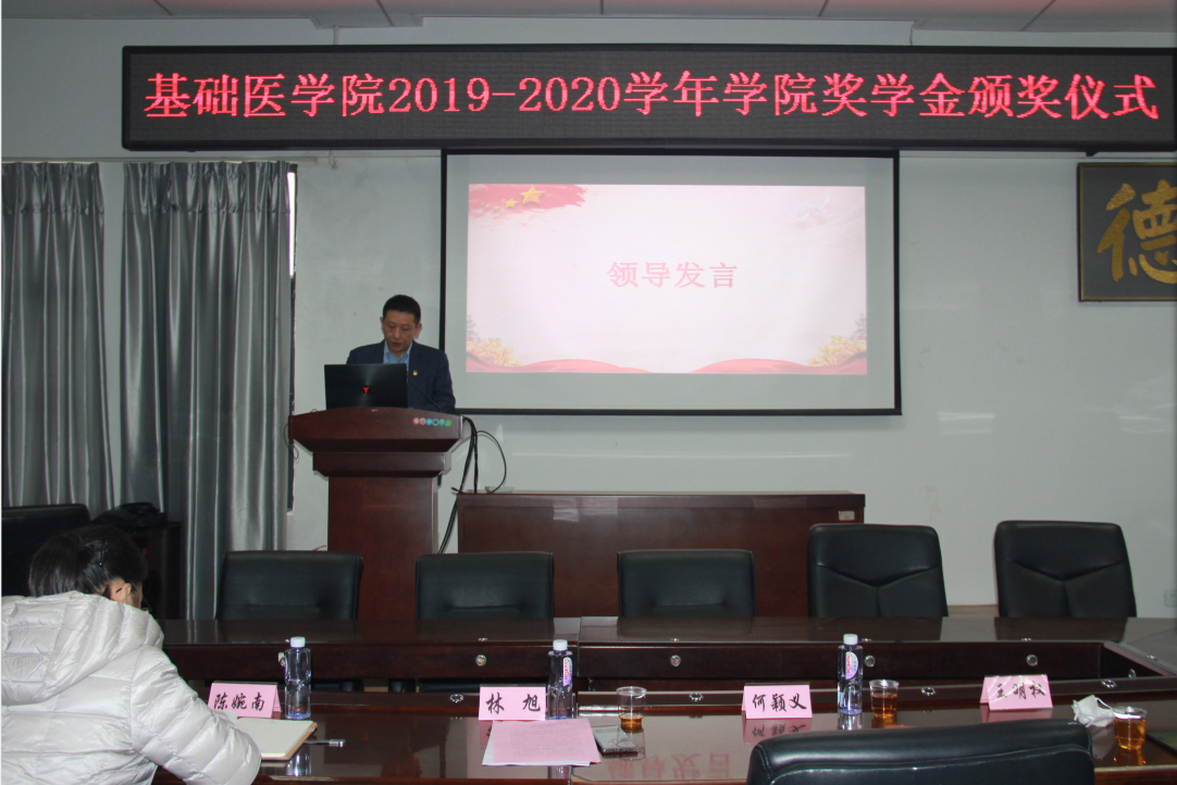 2020年12月23日,快猫视频 在道德讲堂举行2019-2020学年学院奖学金颁奖仪式。副校长林旭、院党委书记何颖义、院长陈婉南、院党委委员赵小贞、院党委委员刘卉出席了颁奖仪式。院教学科研办王明权老师,行政管理办公室张勍老师以及部分师生代表参加本次活动。本次颁奖仪式由院党委书记何颖义主持。