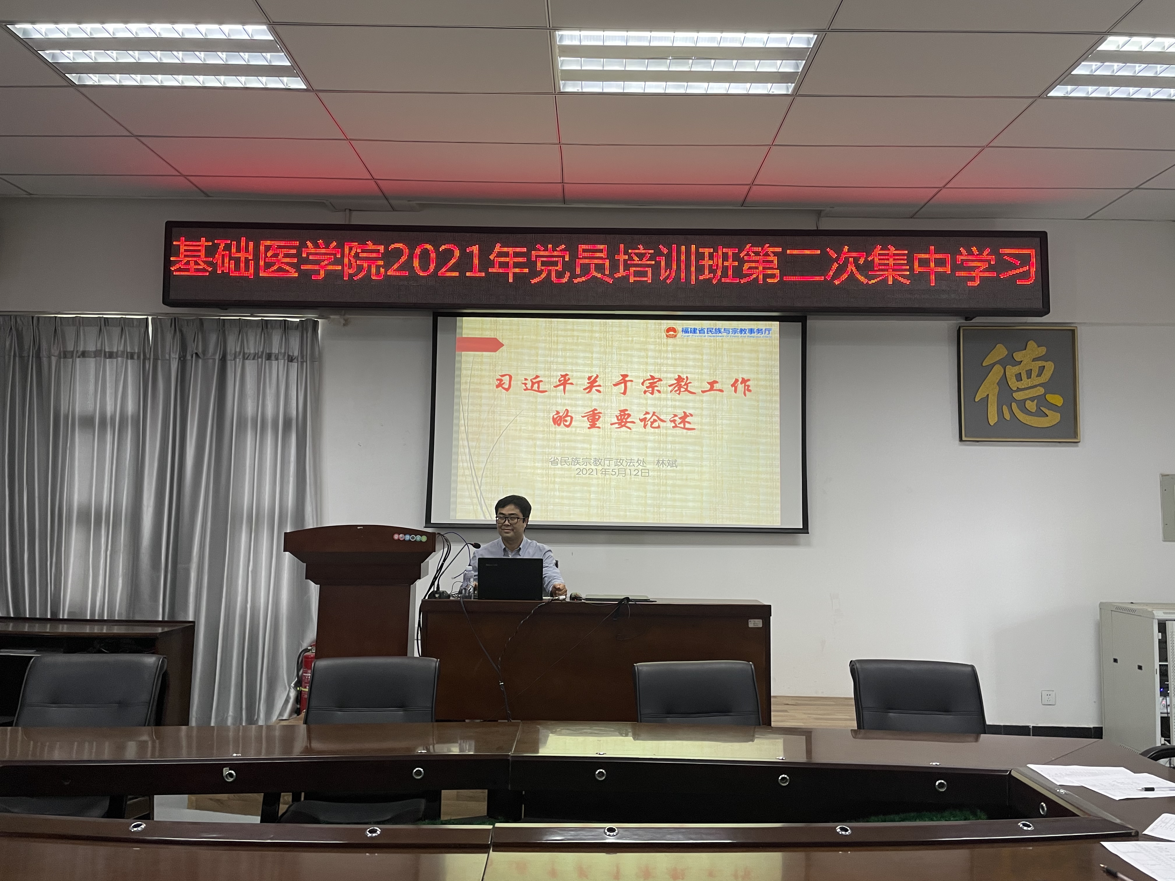 5月12日下午,快猫视频 邀请福建省民族与宗教事务厅政策法规处四级调研员林斌,在2#南区道德讲堂作《习近平关于宗教工作的重要论述》专题讲座,学院全体党员、入党积极分子140余人听取了讲座。