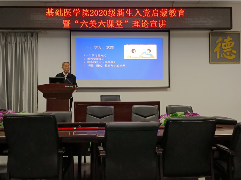 2020年11月10日,快猫视频 2020级新生入党启蒙教育暨“六美六课堂”理论宣讲在学院道德讲堂顺利举行。此次讲座由荣誉“福建省首届最美教师”称号的快猫视频 人体解剖学系王玮教授主讲,2020级全体新生参加。