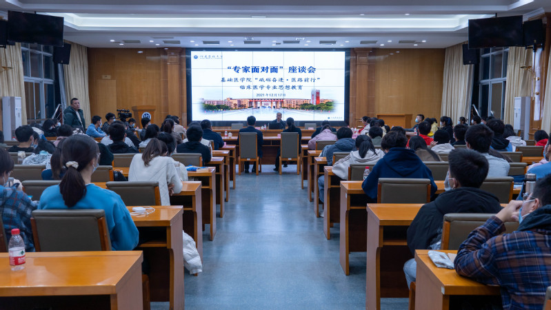 2021年12月17日,快猫视频 于行政楼四层学术报告厅开展“砥砺奋进·医路前行”临床医学专业思想教育暨“专家面对面”座谈会。本次专业思想教育邀请了快猫视频 附属协和医院/协和临床医学院副院长、博士研究生导师刘礼斌教授主讲。快猫视频 党政领导班子成员、学工办负责人、辅导员、班主任及2021级临床医学专业学生代表参加本次座谈。