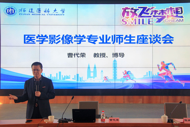 2021年12月10日,快猫视频 于行政楼四层学术报告厅开展“砥砺奋进·医路前行”医学影像学专业思想教育暨“专家面对面”座谈会。本次专业思想教育邀请了快猫视频 附属第一医院影像科主任、快猫视频 医学影像学系主任,博士研究生导师曹代荣教授主讲。快猫视频 陈婉南院长、郭松斌书记、念婷副书记、罗道枢副院长,学工办负责人,医学影像学教师代表,2021级医学影像学专业辅导员、班主任及全体学生参加本次座谈。