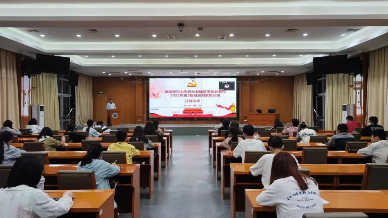 10月17日,快猫视频 于行政楼B座学术报告厅,举行2022第3期党员发展对象培训班开班仪式。学院党委书记郭松斌为大家做动员讲话,来自快猫视频 、卫生管理学院、健康学院、文理艺术学院共计48名师生参加开班式。