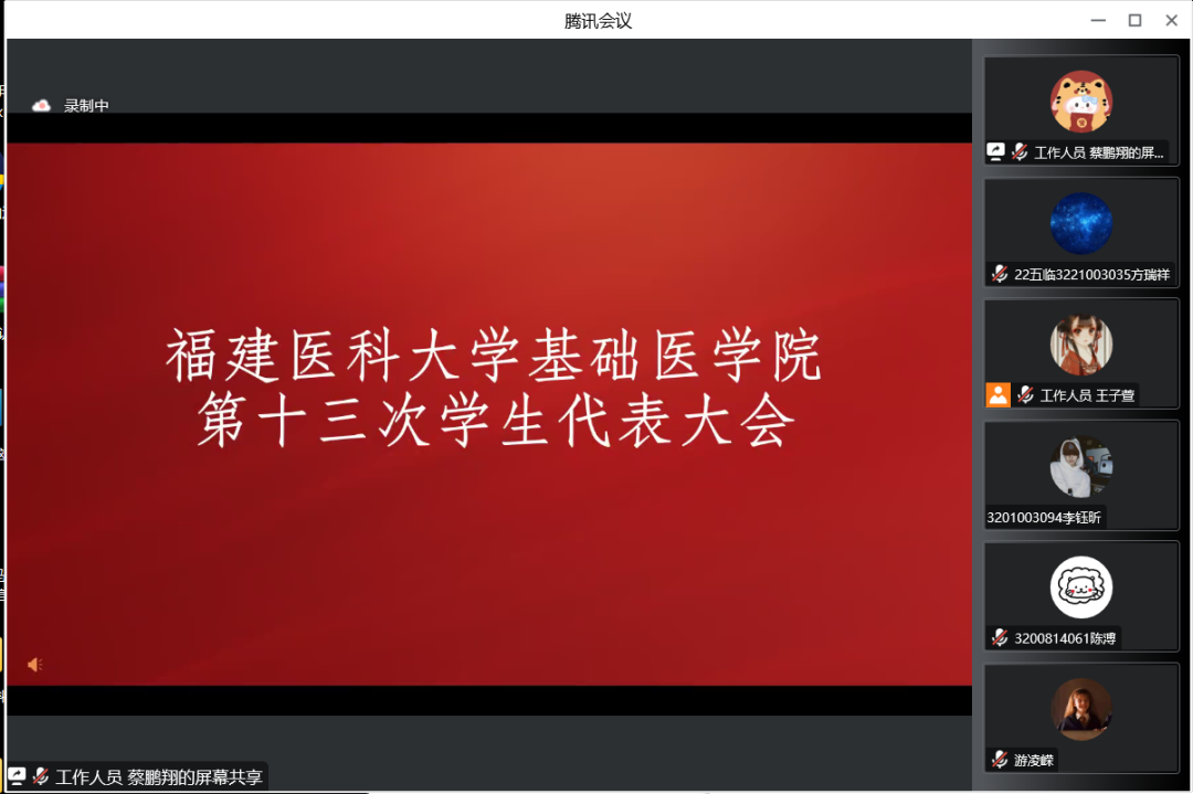 本次大会有来自院各专业代表团共50位学生代表参与线上投票选举,学院党委副书记高明、学工办主任、团委书记林中青、2021级临床医学团总支书记张洋、校学生会执行主席陈佳颖同学、学院第十二届学生会主席团成员庄嘉婧同学以及学院各年级专业辅导员出席了本次大会。