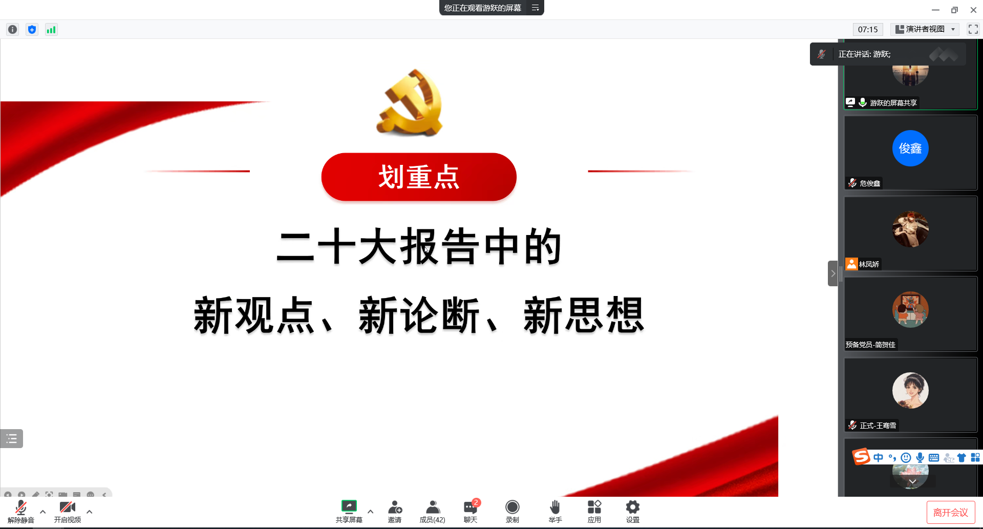 12月18日,马克思主义学院教授游跃给快猫视频 2022级学硕研究生们进行党的二十大精神宣讲。他以《推进中国式现代化》为主要内容,从党的二十大的科学内涵和本质要求、始终坚持高质量发展作为实现目标的“金钥匙”、始终保持新时代踔厉奋发勇毅前行的精神状态这三个主要方面,结合与当代青年发展的相关关系,生动具体地向同学们讲述了党的二十大的丰富内涵,并提出了对新时代青年的殷切期盼,希望大家怀抱梦想、脚踏实地、敢想敢为、善作善成,立志做一个有理想、敢担当、能吃苦、肯奋斗的新时代好青年,让青春在全面建设社会主义现代化国家的火热实践中绽放绚丽之花。