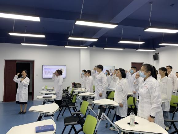 罗道枢副院长也强调了临床实习中注重保护患者隐私、注意医疗规范和安全等事项。全体2019级基础医学专业本科生在临床实习会最后进行了医学生誓言宣誓仪式。