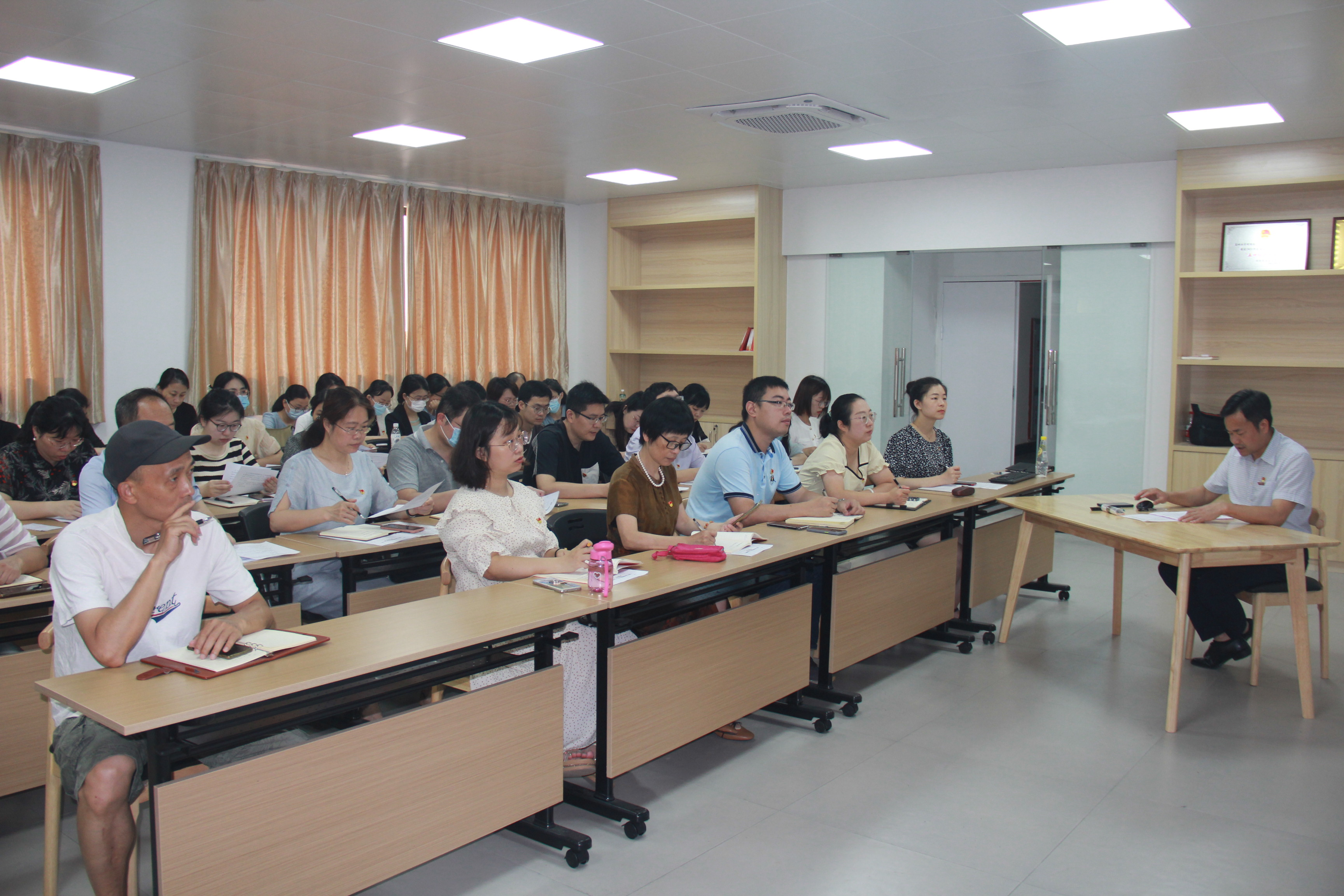 郭松斌围绕学习体会和工作实践,从“找准当前历史方位和坐标,深刻认识从严治党内涵”“践行‘全心全意为人民服务’宗旨,深化责任担当认识”“锤炼忠诚干净担当的政治品格,增强担当作为本领”三个方面以独到的见解、鲜活的语言、详实的案例,为广大党员干部带来丰盛的精神大餐。随后,郭松斌同志与所联系的机关党支部、病理学系党支部、癌症与退行性疾病转化医学党支部、神经科学研究院党支部深入交流,开展专题调研。