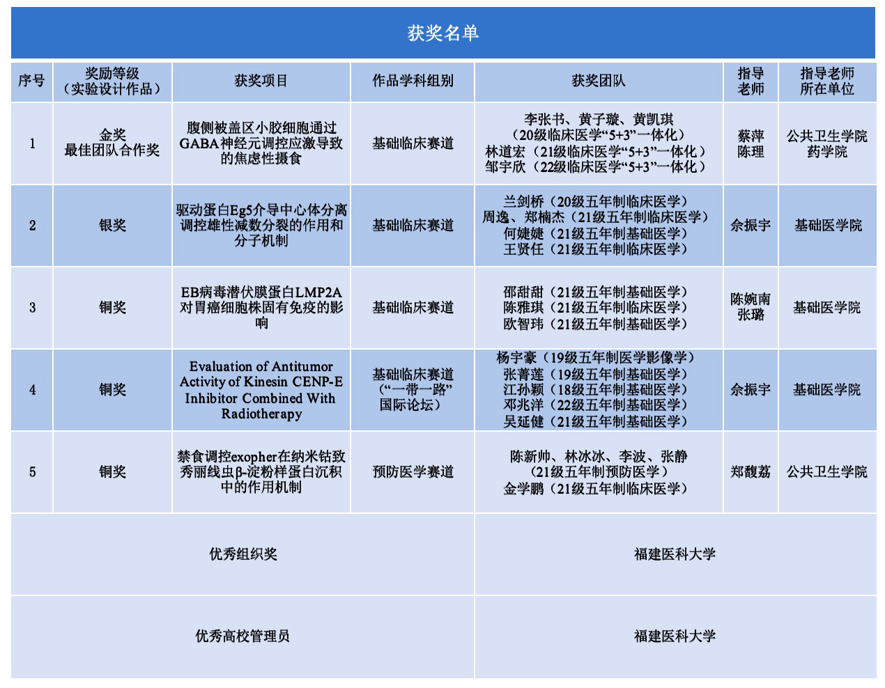 8月18日至28日期间,第九届全国大学生基础医学创新研究暨实验设计论坛及2023“一带一路”国际大学生医学基础创新实验设计论坛(以下简称“一带一路”国际论坛)总决赛在重庆举行。我院本科生团队荣获1金1银3铜和1项最佳团队合作奖。同时,快猫视频 作为我校管理员单位获优秀组织奖和优秀高校管理员各1项。