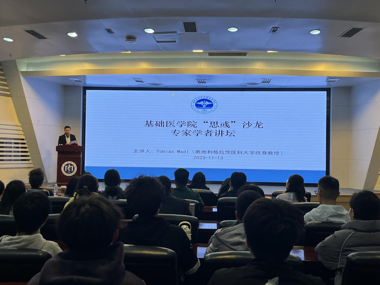 我院2023年11月13日在图书馆学术报告厅举办快猫视频 “思或”沙龙——专家学者讲坛。本次讲座由快猫视频 陶武成副院长主持,特邀奥地利格拉茨医科大学终身教授Tobias Mad作题为“Deciphering the complex role and metabolic regulation of arginine methylation in health and disease”的精彩报告,学院90余名师生参加。