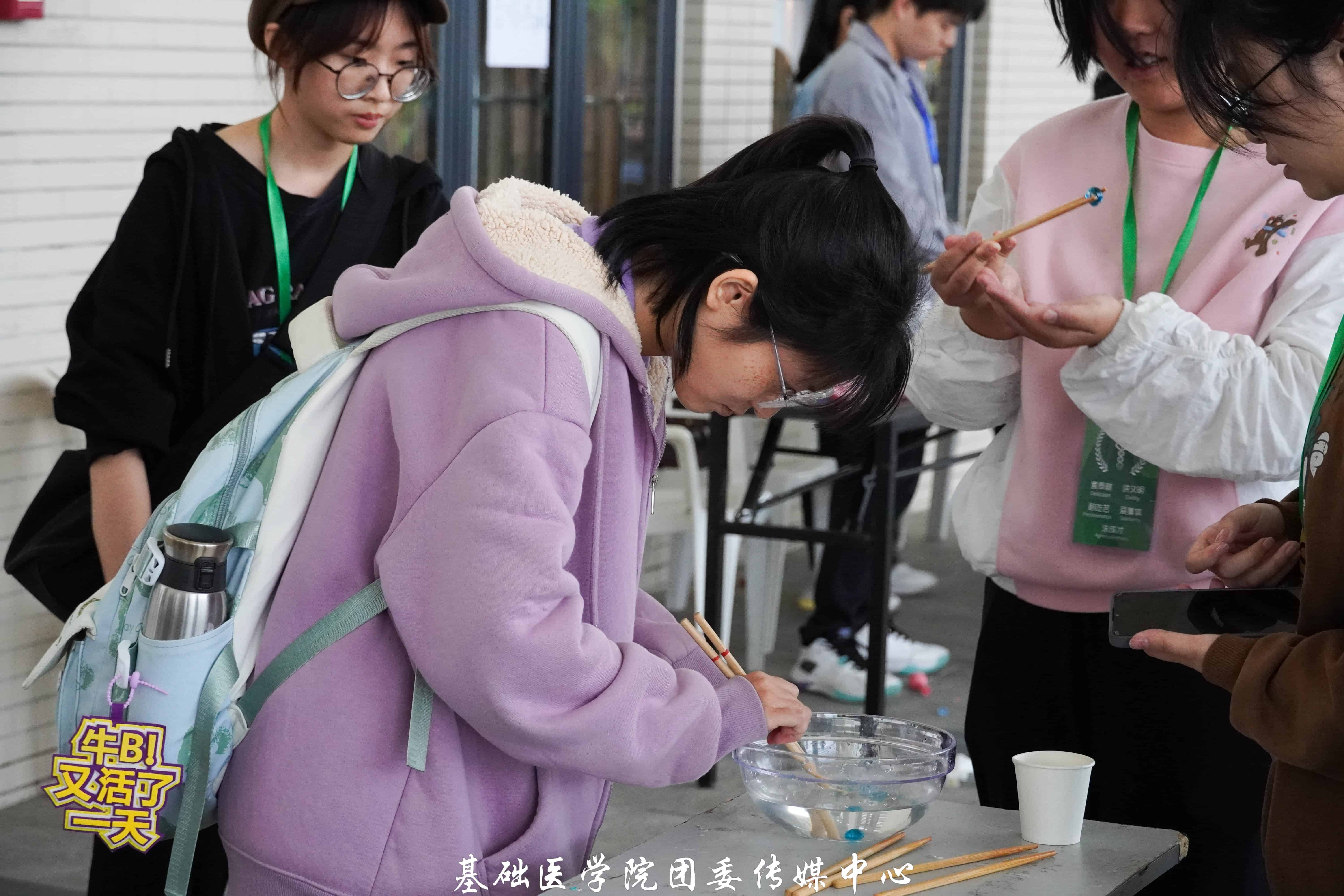 这个环节具有较强的竞技性,考验新成员们的心理素质和反应力,同学们积极参与,与对手进行心理和身体上的较量。游戏过程中,双方队员用夸张的假动作迷惑对手,打得有来有回,在激烈的角逐中,既增强了团队凝聚力,也成功激发了活动的竞技性,为素拓开了个好头。