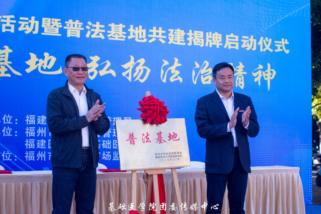 12月1日至7日是我国第六个“宪法宣传周”。为深入学习贯彻习近平法治思想,12月7日上午,学院携手福州市市场监督管理局、闽侯县市场监督管理局,三方承办的2023年宪法宣传周活动暨普法基地共建揭牌启动仪式在旗山校区青春广场举行。