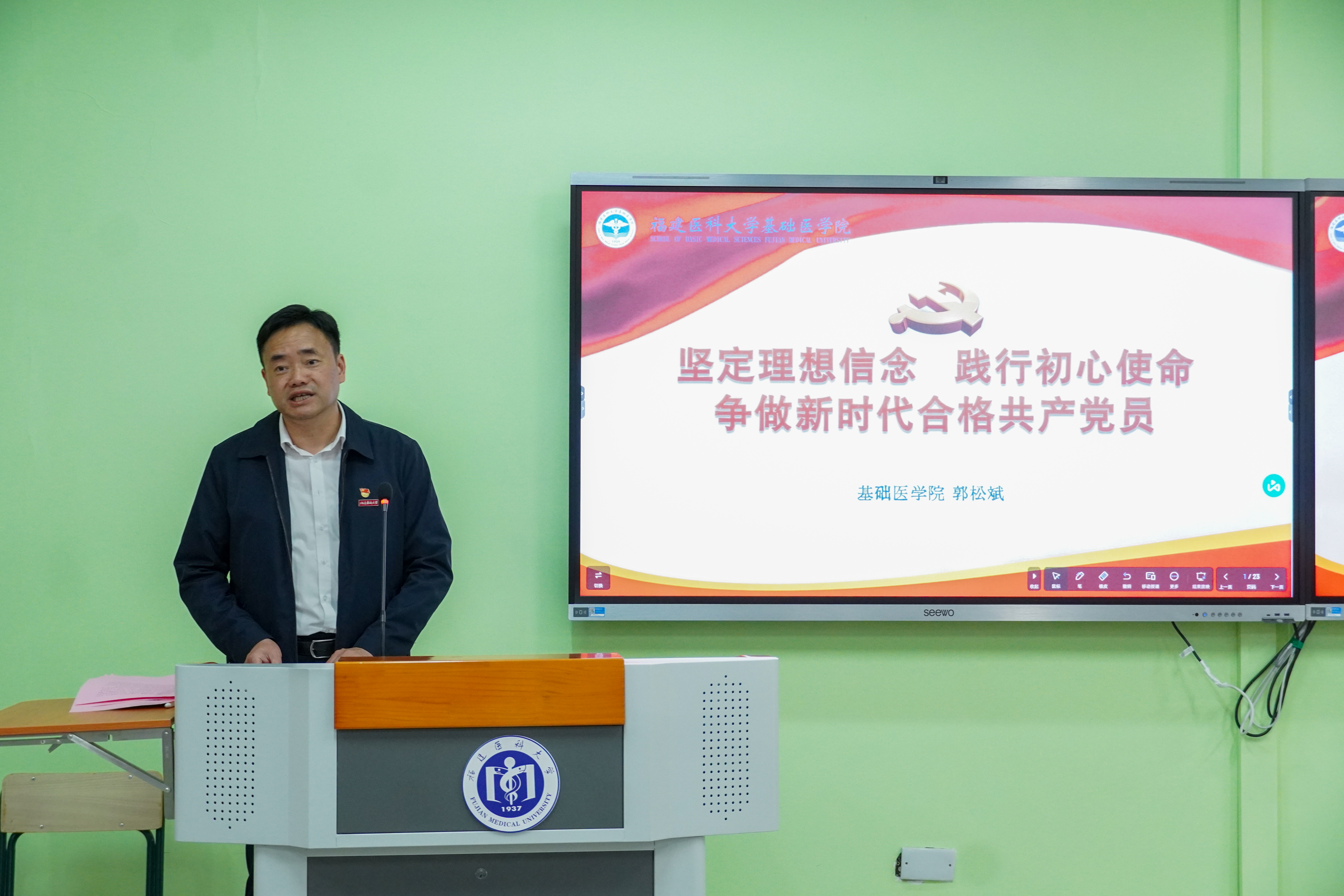 随后,郭松斌书记为学员们上《坚定理想信念,践行初心使命,争做新时代合格共产党员》专题党课。他简要回顾了中国共产党党史,指出初心和使命是激励共产党人不断前进的根本动力,理想信念是中国共产党人的灵魂和特质。他强调,做一名新时代合格共产党员,要做到立场坚定、意志坚强,要事不避难、勇于担当,要胸怀大局、敬业奉献,要立说立行,只争朝夕。广大党员必须坚定理想信念,发挥党员的先锋模范作用,践行初心使命、强化责任担当,全心全意为人民服务!