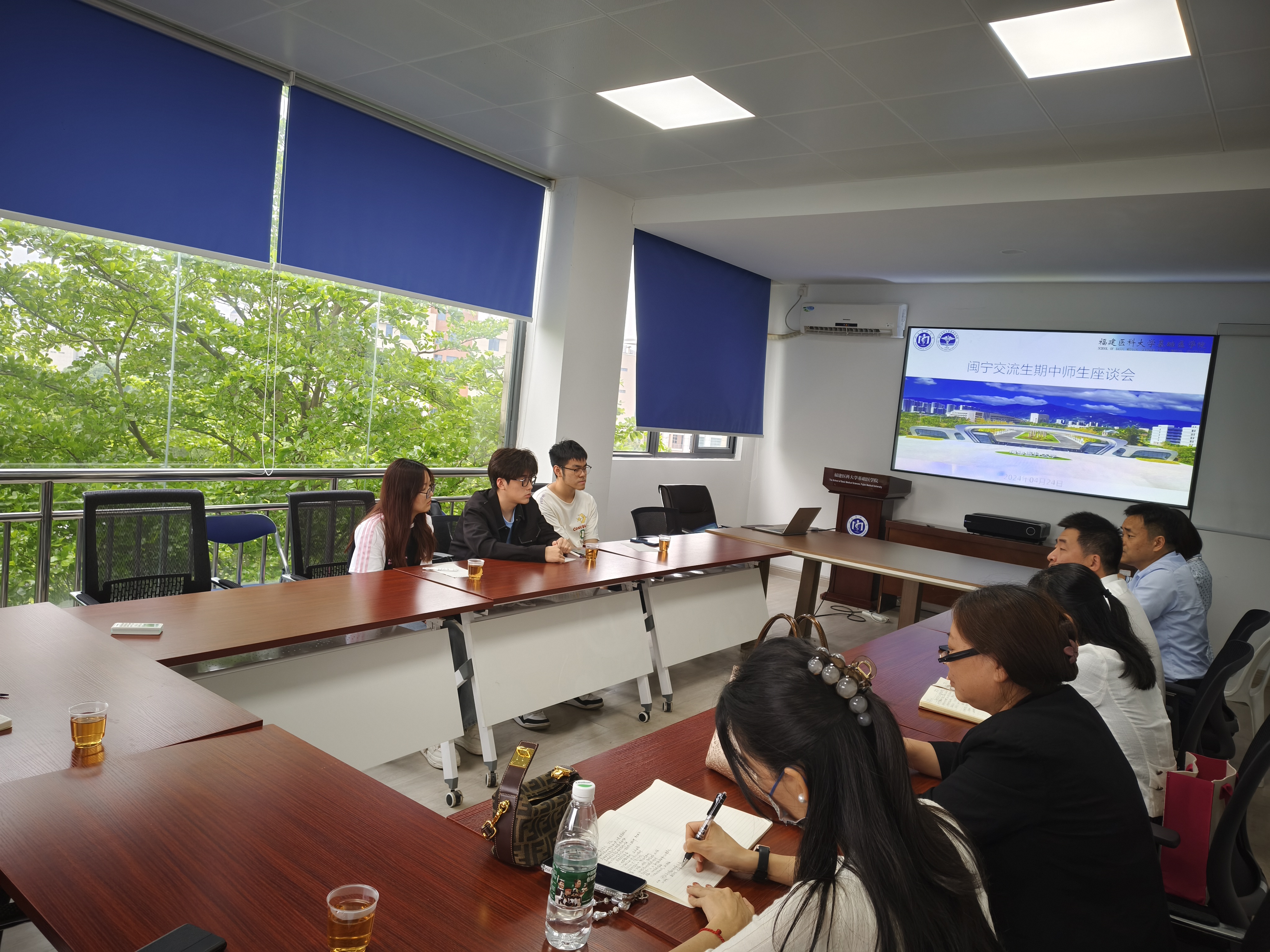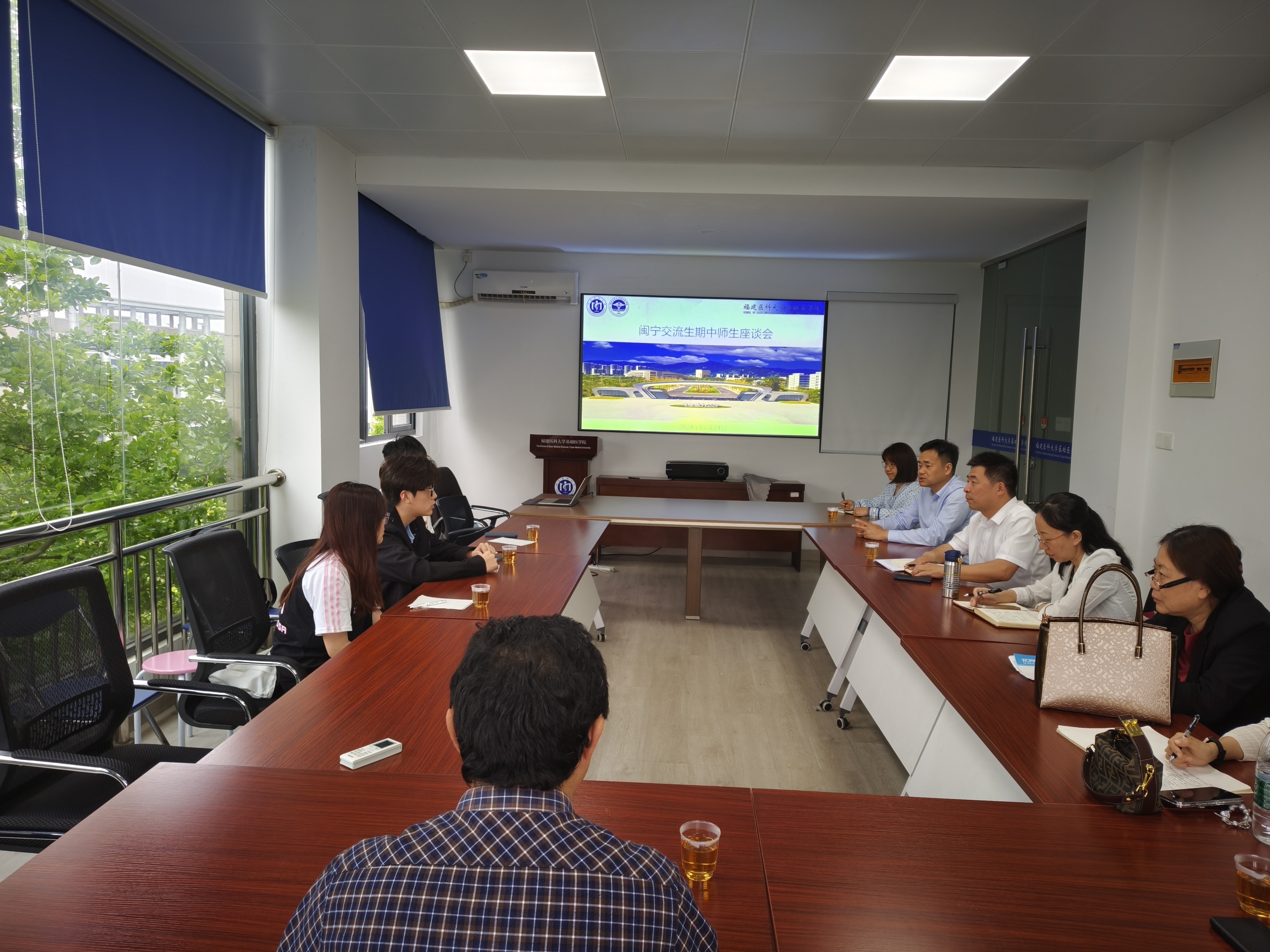 为进一步关心和了解宁夏医科大学交流生在我校的学习和生活情况,快猫视频 于4月24日下午在旗山校区组织召开了闽宁交流生期中师生座谈会。快猫视频 党委书记郭松斌、副院长罗道枢、宁夏医科大学快猫视频 来闽交流学生、相关课程负责人、教科办、学工办等部门负责人和辅导员共同参会交流。