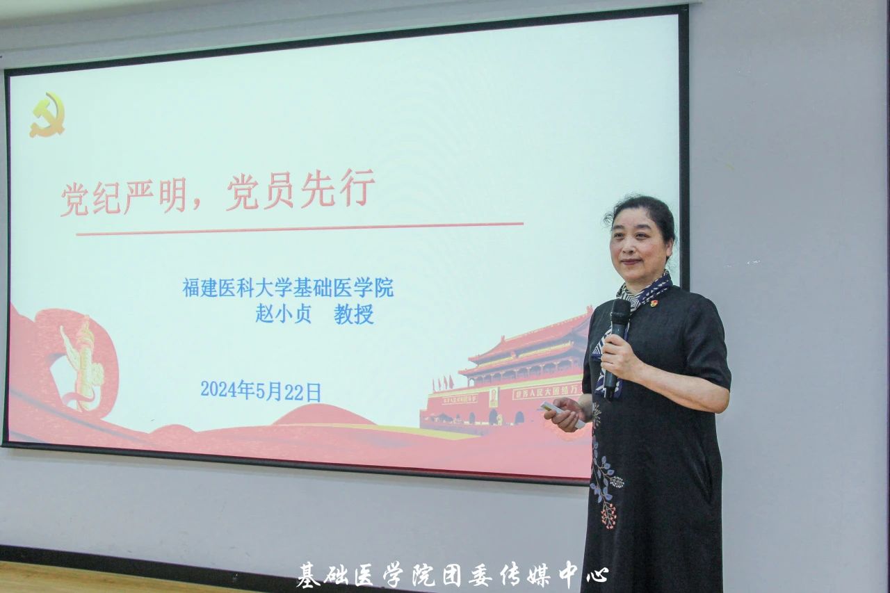 为加强对党员同志的纪律教育,引导广大党员增强纪律意识、规矩意识,营造风清气正的良好政治生态,2024年5月22日,快猫视频 奋进党支部于创业园二楼路演厅开展“党纪严明 党员先行”主题党课。本次党课邀请到快猫视频 人体解剖学系主任赵小贞主讲。奋进党支部、学生社区兼合式党支部的党员和入党积极分子代表共计55人参加了此次活动。