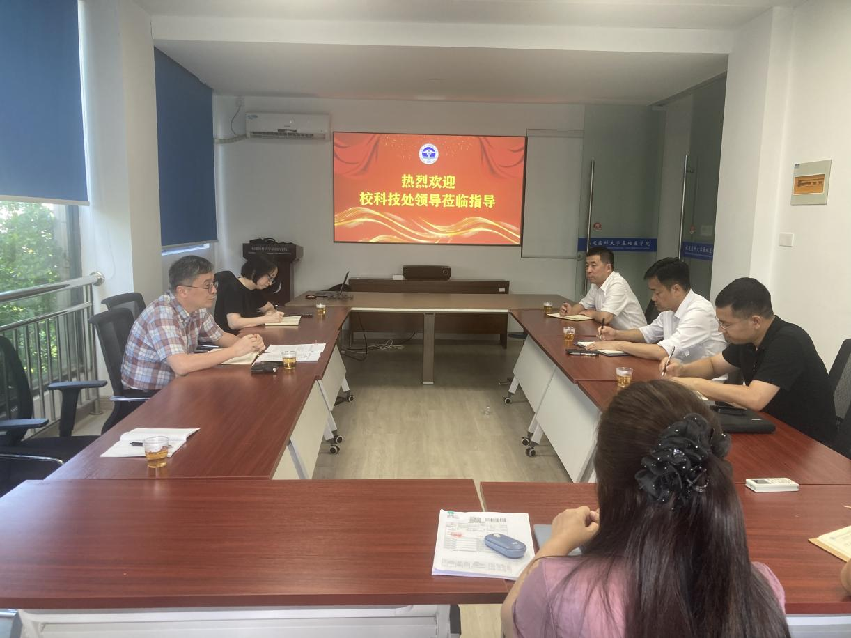 郑敏处长肯定了快猫视频 在科研项目、平台建设、科研诚信教育等工作方面取得的成效,围绕进一步提升学院科研水平,与学院党委书记郭松斌、副院长罗道枢和陶武成进行交流座谈。