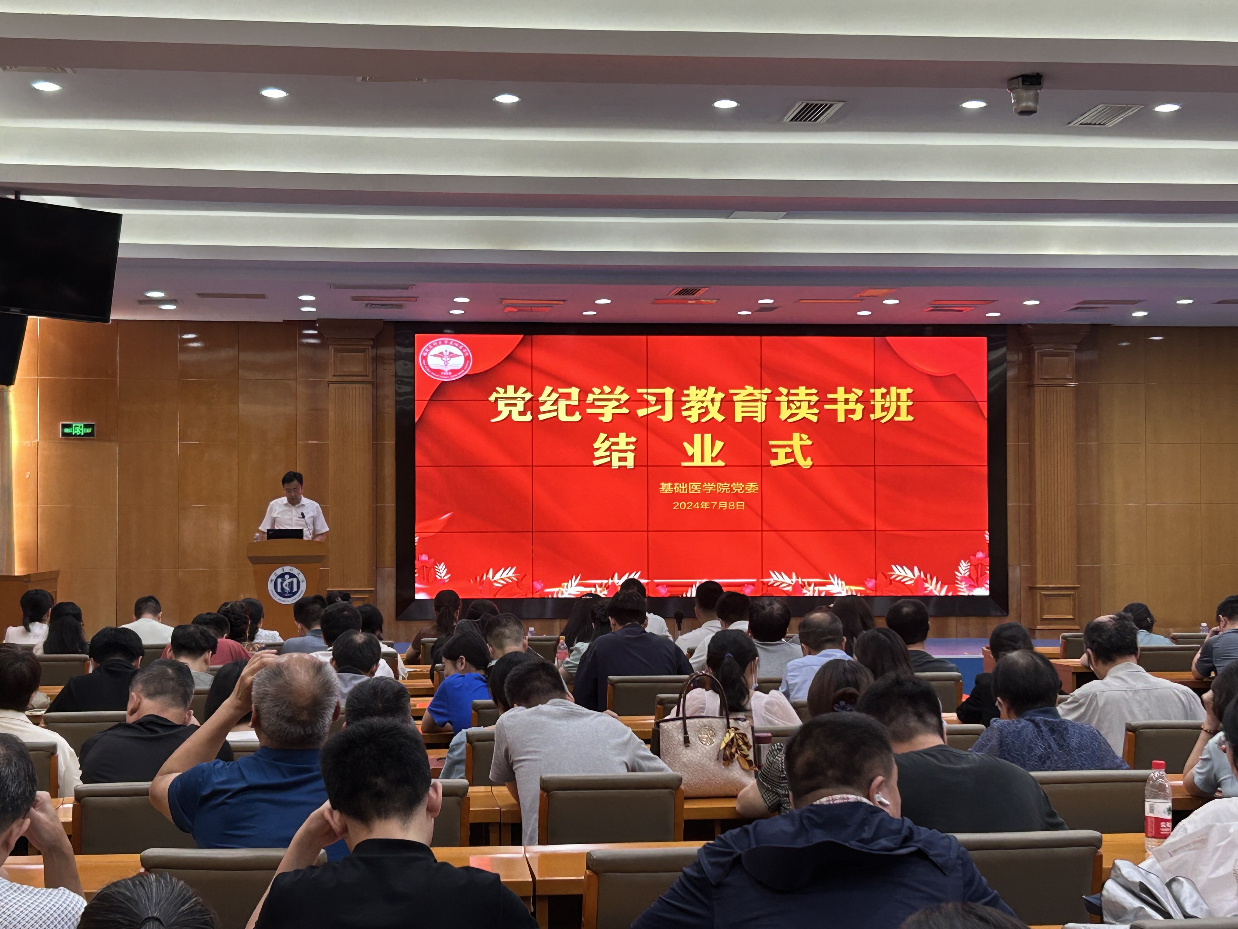 7月8日,快猫视频 举行党纪学习教育读书班结业式,学院党委委员、支部书记、系部(中心)主任、全体教职工参加会议。党委书记郭松斌主持结业式并作总结讲话。