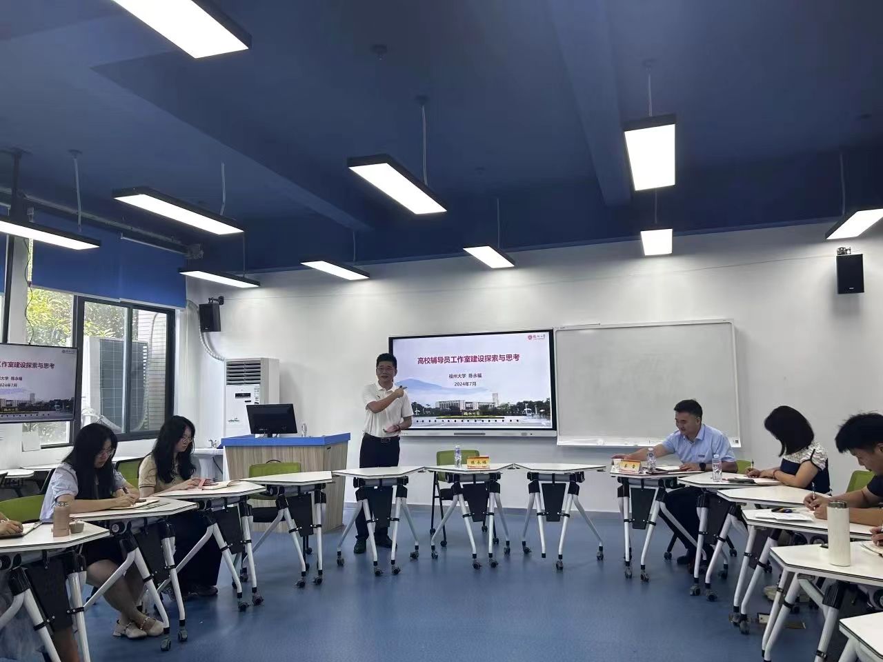 为进一步加强学院辅导员工作室建设,推动辅导员队伍专业化、职业化,学院于7月5日成功举办2024年第9期辅导员思政沙龙《高校辅导员工作室建设探索与思考》。本次活动邀请到福州大学人文社会科学学院党委副书记、纪委书记陈永福教授主讲,快猫视频 党委副书记秦雷主持,全体辅导员参加。