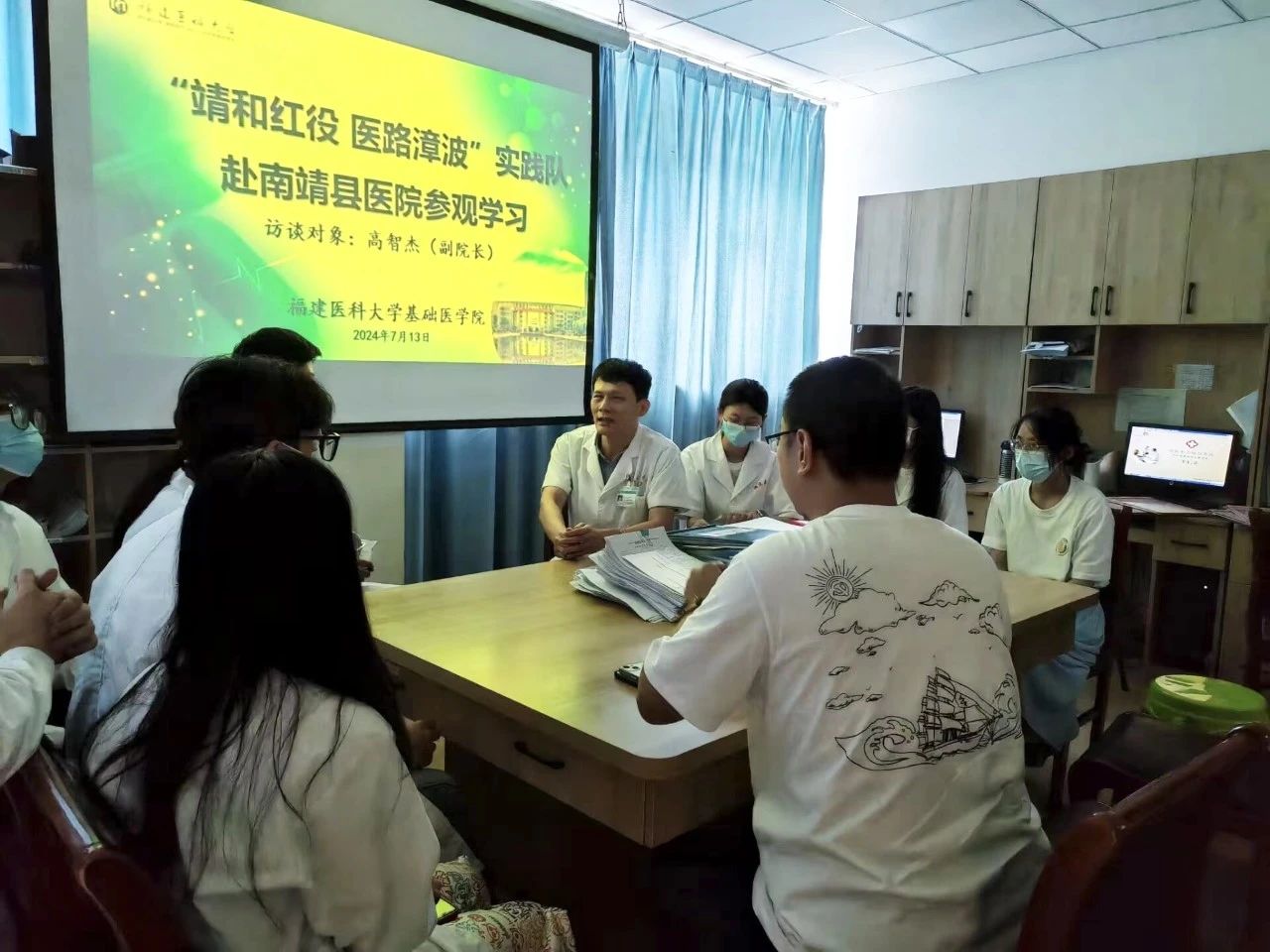 为贯彻落实教育部关于“访企拓岗促就业专项行动”的工作部署和要求,7月13日,快猫视频 访企拓岗促就业座谈会(南靖县医院专场)暨 “靖和红役,医路漳波”实践队赴南靖县医院参观学习活动在南靖县医院圆满举行。南靖县医院副院长高智杰、科教科主任游碧珍、妇产科主任王晓燕,以及快猫视频 危俊鑫老师、学生代表等一行14人参与了此次活动。
