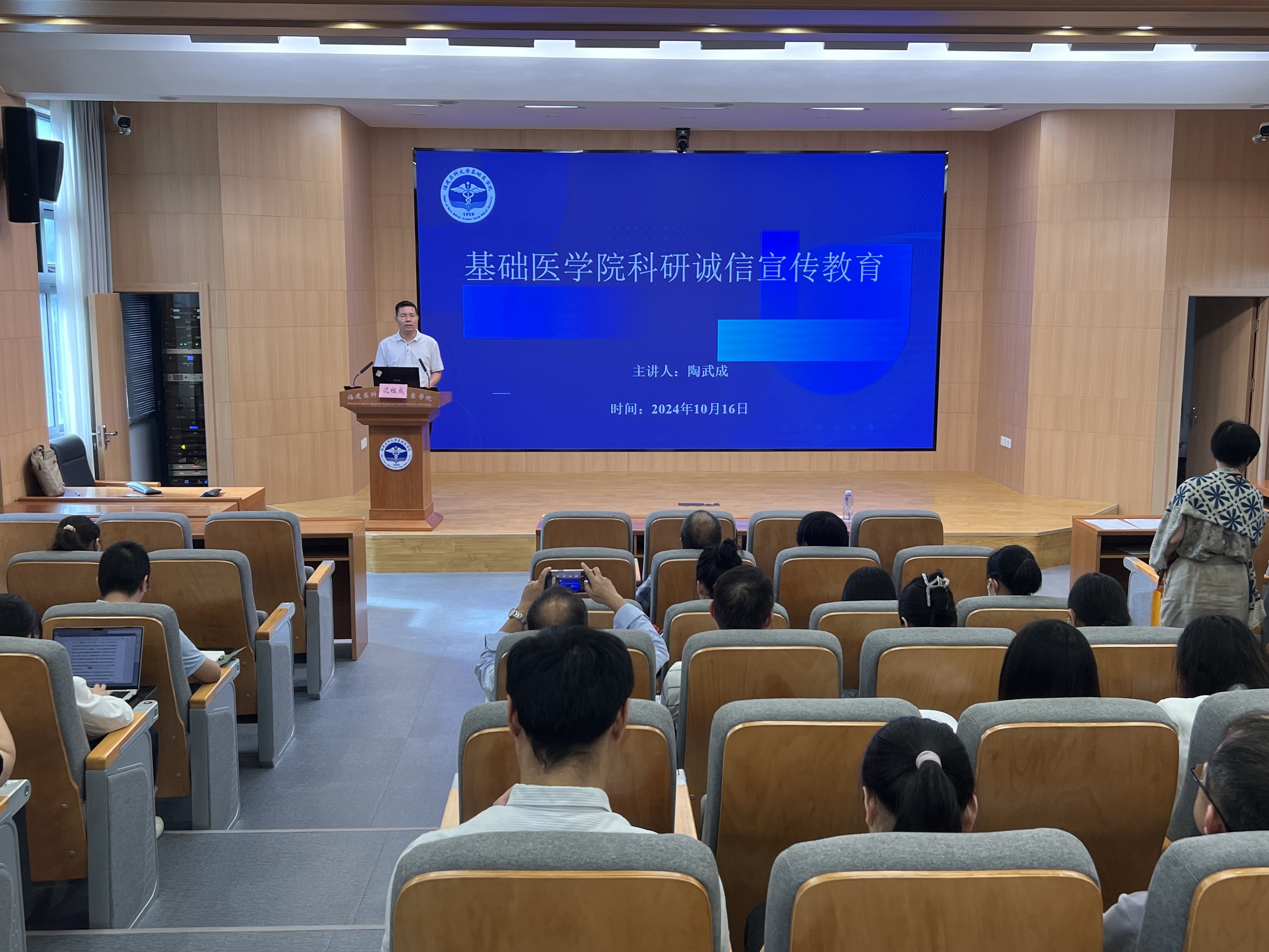 讲座结束后,陶武成副院长主持召开了科研诚信宣传教育及研究生导师培训会。他强调要加强学术规范宣传,提高学术规范认识,预防学术不端行为的发生,营造风清气正的科研氛围。会上,组织研究生导师学习了相关文件,进一步强化导师第一责任人担当意识,提高导师研究生培养能力。