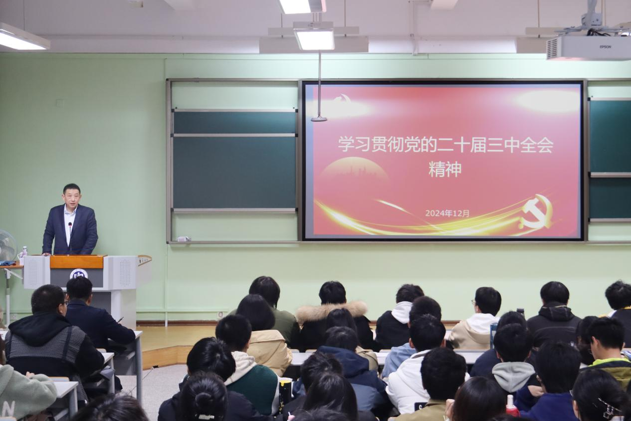 12月25日晚,校长林旭在旗山校区第53教室作学习贯彻党的二十届三中全会精神专题宣讲。