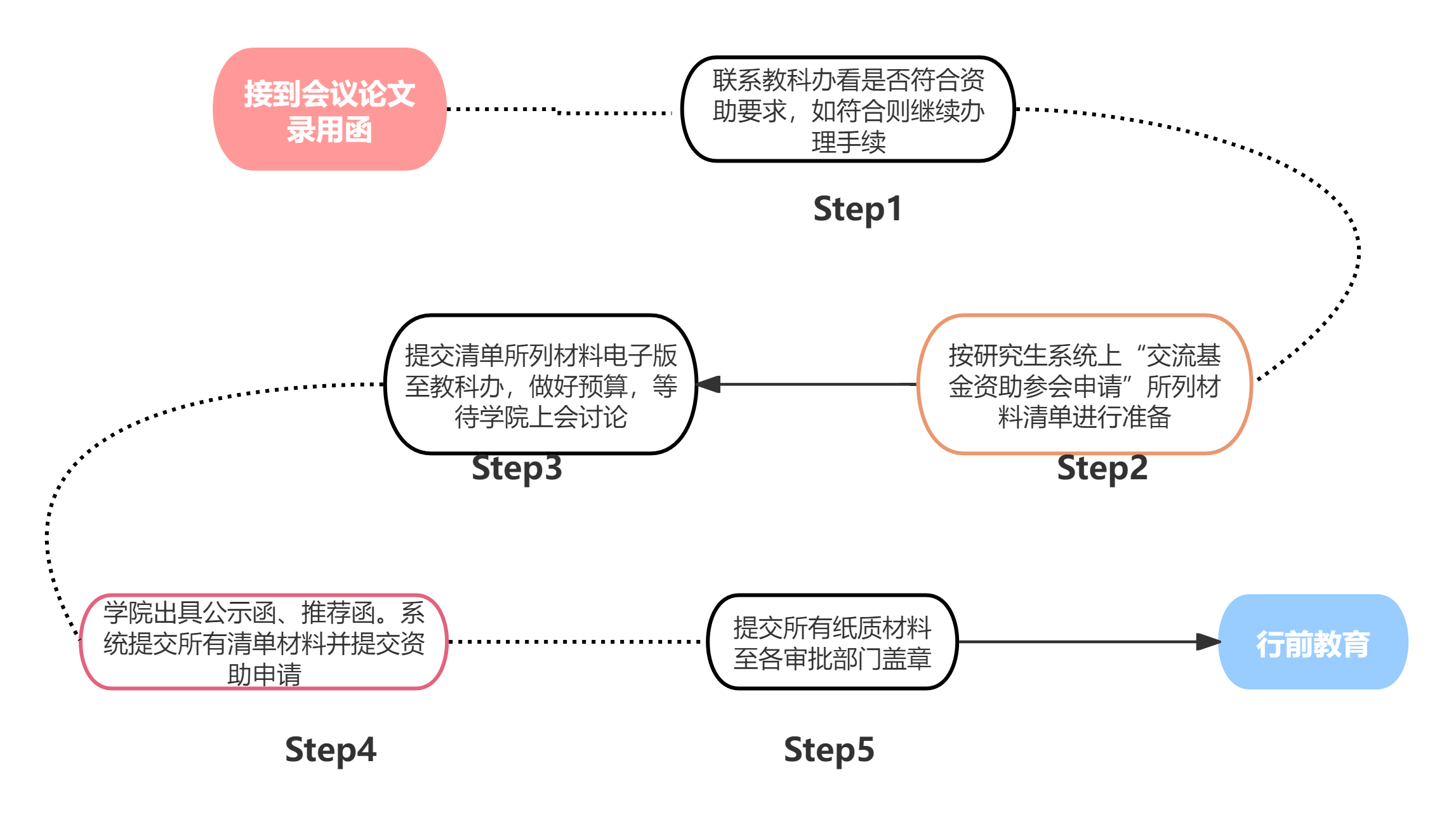 以上为申请学校研究生学术交流基金资助的流程,如申请学院交流资助,则研究生系统上填写的是“出国(境)参加学术会议申请”。