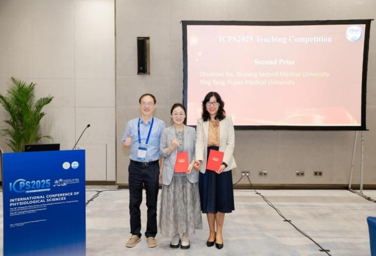 2025年10月9日,国际生理学学术大会教师讲课大赛于浙江杭州国际博览中心落幕。该赛事由中国生理学会教育工作委员会主办,是生理学教学领域高水平赛事。决赛采用“15分钟英文现场授课+教学设计展示”形式,快猫视频 生理学与病理生理学系唐影副教授凭借出色的全英文教学表现,以流利英文、清晰逻辑及科学的教学设计,践行“以学生为中心”理念,从全国多所高校优秀教师中脱颖而出,荣获大赛二等奖,充分展现快猫视频 教师扎实的专业功底和卓越的教学风采。
