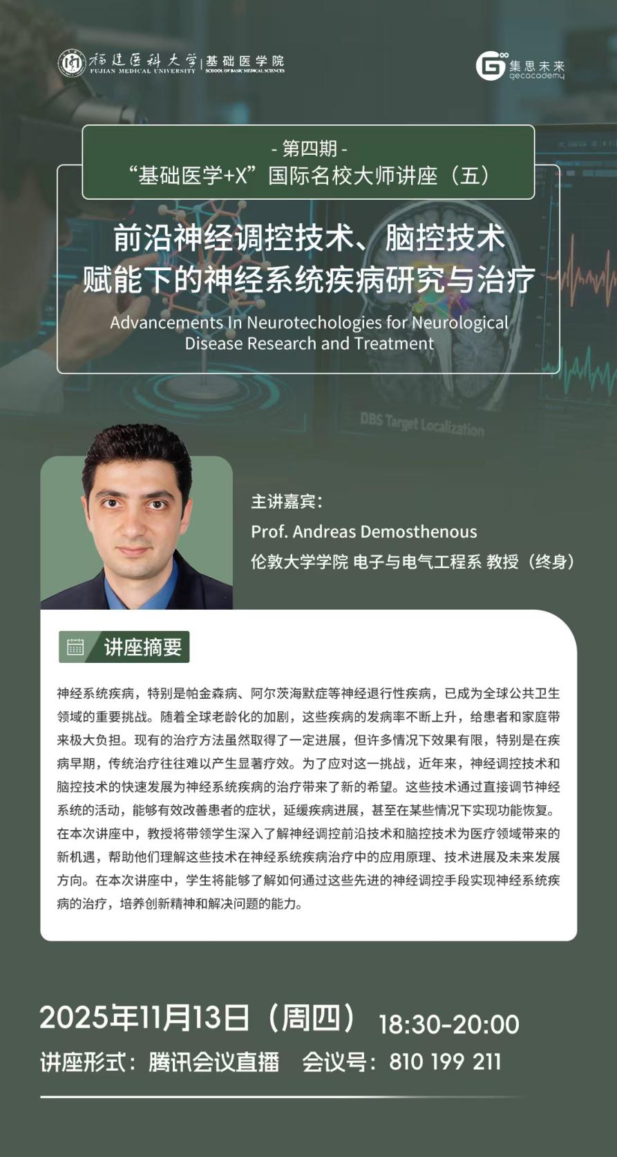 为促进学生了解以人工智能、大数据为代表的新一轮科技革命和产业变革下锚定基础医学疾病诊疗与研究的前沿研究方向与方法,探索医学与其他学科的交叉应用,培养国际化视野,探讨国际研究趋势和动态。快猫视频 联合天津集思教育集团继续开展第四期“基础医学+X”国际名校大师讲座,主讲嘉宾为来自全球一流高等学府和研究机构的9位知名教授。现将该系列讲座(五)相关信息发布见下: