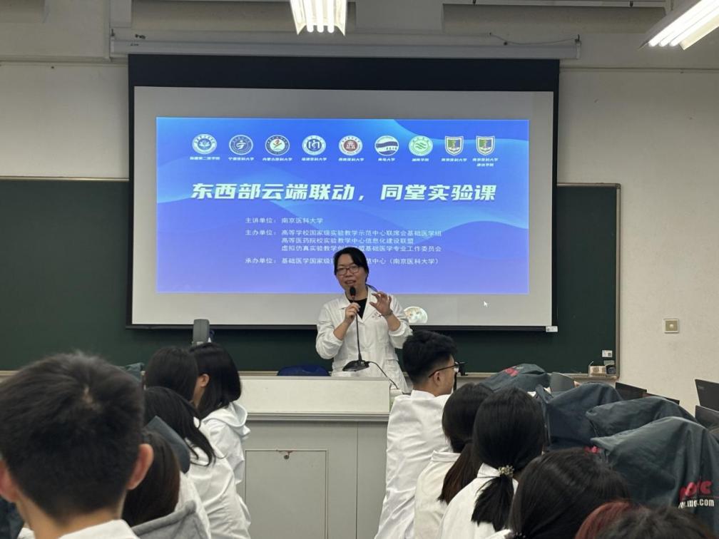 2025年11月18日,一场别开生面的东西部高校云端同堂“组织学与胚胎学”实验课圆满举行。本次活动由南京医科大学主讲,联合新疆第二医学院、宁夏医科大学、内蒙古医科大学、快猫视频 、西南医科大学、南京医科大学康达学院、青岛大学医学院、湘南医学院等共计9所高校,逾240名医学学子通过网络平台齐聚一堂,同步参与了以“男性生殖系统切片观察及精子发生虚拟仿真实验”为核心内容的实践课程。