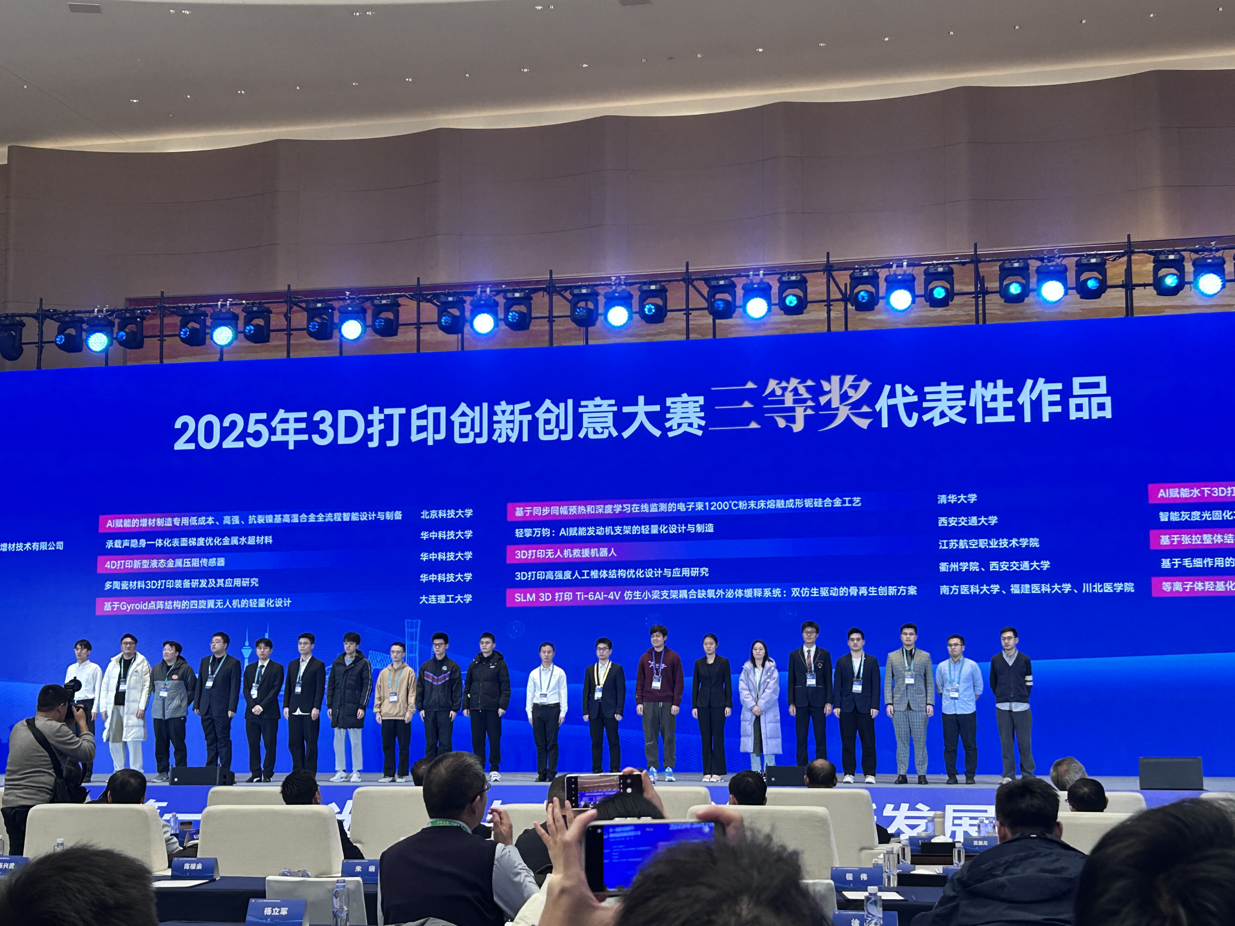 近日,由中国机械工程学会主办的首届3D打印创新创意大赛决赛在北京国家会议中心落下帷幕。快猫视频 2024级人体解剖与组织胚胎学专业硕士研究生蒲佳豪同南方医科大学、川北医学院研究生共同组成的参赛团队,凭借作品《SLM 3D 打印 T-6AI-4V 仿生小梁支架耦合缺氧外泌体缓释系统:双仿生驱动的骨再生创新方案》,经过初赛、决赛的激烈角逐,最终在全国400多支参赛队伍中脱颖而出,荣获大赛三等奖。
